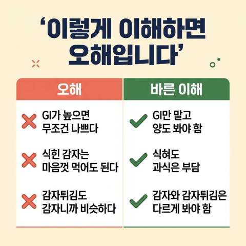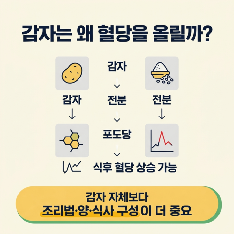 즉, “감자 = 혈당에 무조건 나쁨”으로 이해하면 지나치게 단순한 해석입니다.