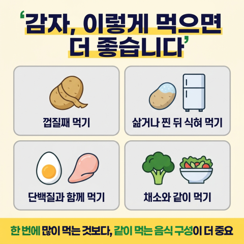 감자는 “먹으면 안 되는 음식”이 아니라, “잘 먹는 방법이 중요한 음식”입니다.