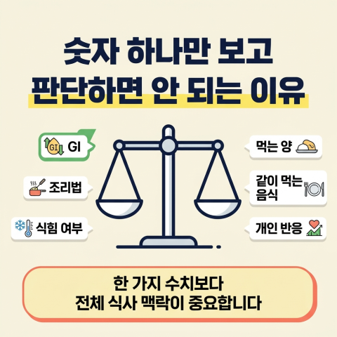 그래서 숫자 하나만 보고 겁먹기보다는 양과 식사 구성을 함께 보는 습관이 더 중요합니다.
