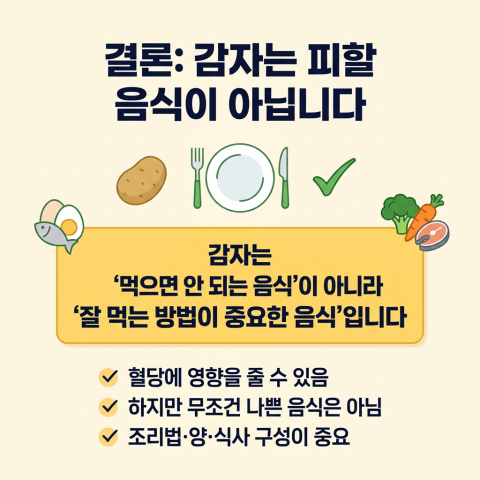 감자는 “먹으면 안 되는 음식”이 아니라, “잘 먹는 방법이 중요한 음식”입니다.