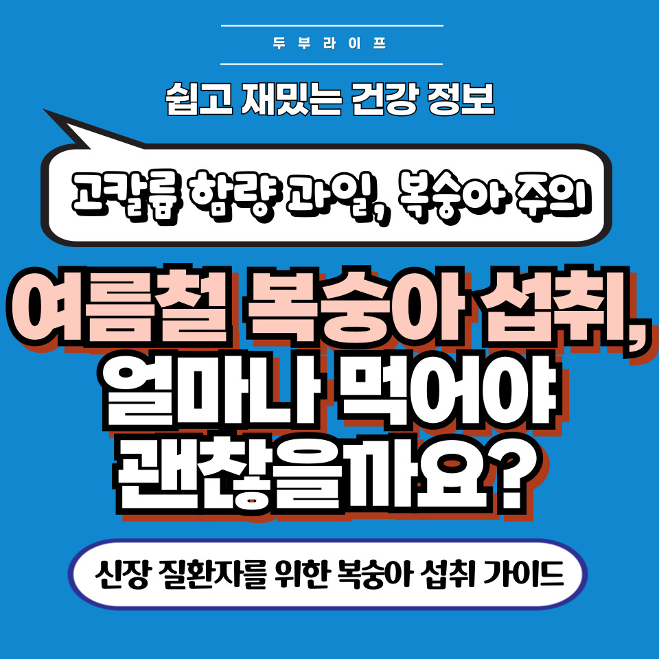 안녕하세요! 두부라이프입니다. 여름 하면 빼놓을 수 없는 과일, 바로 복숭아죠! 저도 여름만 되면 달콤하고 시원한 복숭아 생각에 행복해지곤 해요. 그런데 혹시 이 맛있는 복숭아가 어떤 분들에게는 조심해야 할 과일이라는 사실, 알고 계셨나요? 특히 신장 질환을 가진 분들이라면 복숭아 섭취에 주의가 필요하다고 하더라고요. 저도 처음엔 좀 놀랐는데, 왜 그런지 함께 알아보면서 우리의 건강을 똑똑하게 지켜봐요!