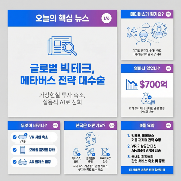 | 미래 방향 | 스마트 안경 + AI 기능 강화 | 메타버스 대중화 지연 판단 |