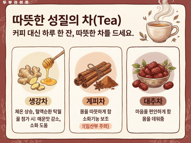 - 식단 편: 체온을 높이는 따뜻한 차와 음식 리스트