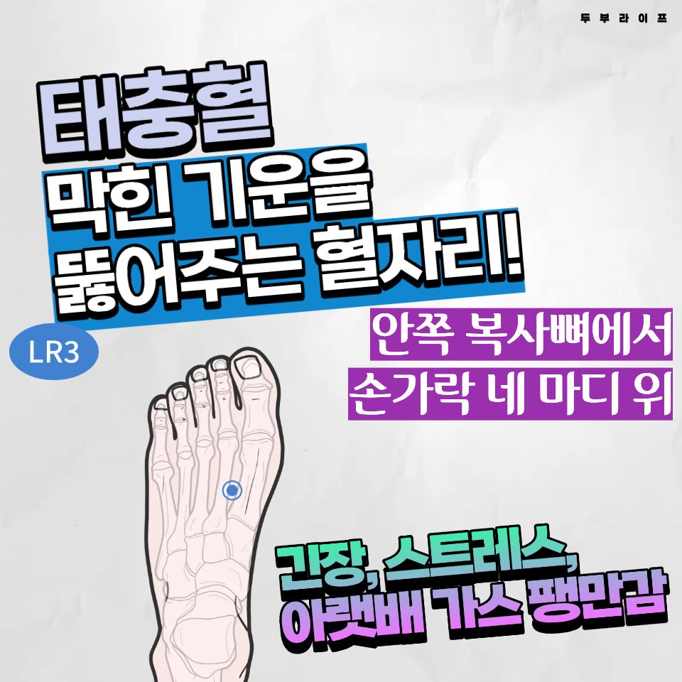 - 태충혈 (LR3): 막힌 기운을 뚫어주는 혈자리