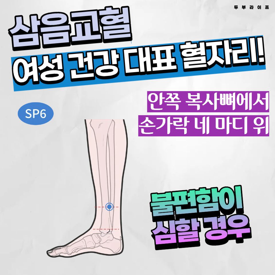 - 삼음교혈 (SP6): 여성 건강 대표 혈자리