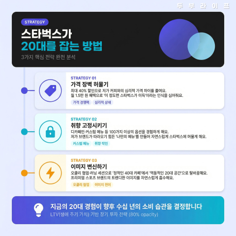 | 취향 고정시키기 | 디카페인·커스텀 메뉴 등 다양한 옵션 경험 | 저가 브랜드가 따라오기 어려운 '나만의 메뉴' 형성 |