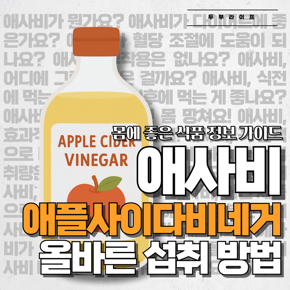 애플사이다비네거(애사비), 제대로 알고 마셔야 건강해집니다! 애사비 섭취를 고민하고 계신가요? 건강한 식습관을 위한 작은 변화인 애사비를 부작용 없이 효과적으로 섭취하는 방법을 알려드릴게요. 꼼꼼히 확인하고 나에게 맞는 방법을 찾아보세요!