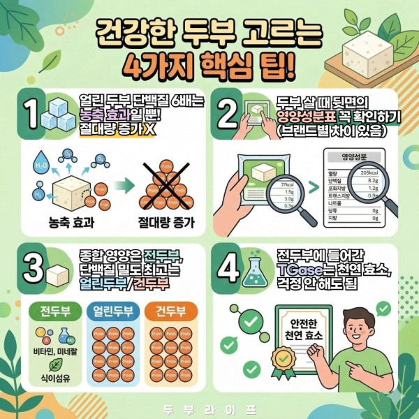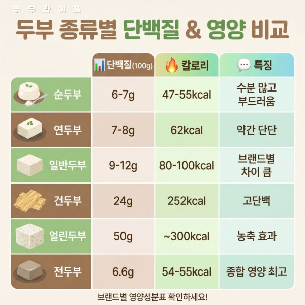 1. 얼린두부, 단백질 6배의 진실 2. 두부 종류별 단백질 한눈에 비교 3. 전두부 특징 및 일반두부와 결정적 차이 4. 목적별 두부 선택 가이드 5. 총정리 |