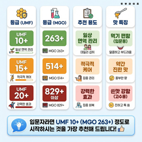 - 초보자 등급 가이드 (UMF/MGO 비교 및 추천)