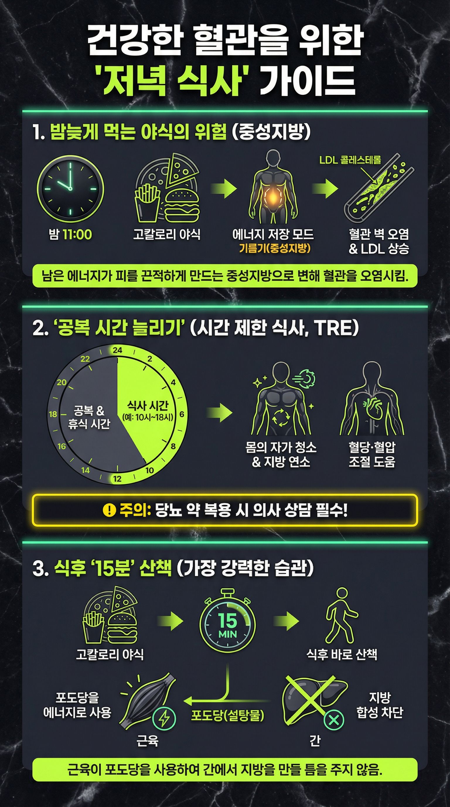 | 야식 줄이기 | 중성지방 감소 근거 있음 | 실천 권장 | 에너지 저장 모드 차단 |