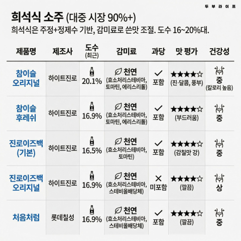 건강 생각한다면 이 소주! 성분표로 알아보는 소주 비교 가이드