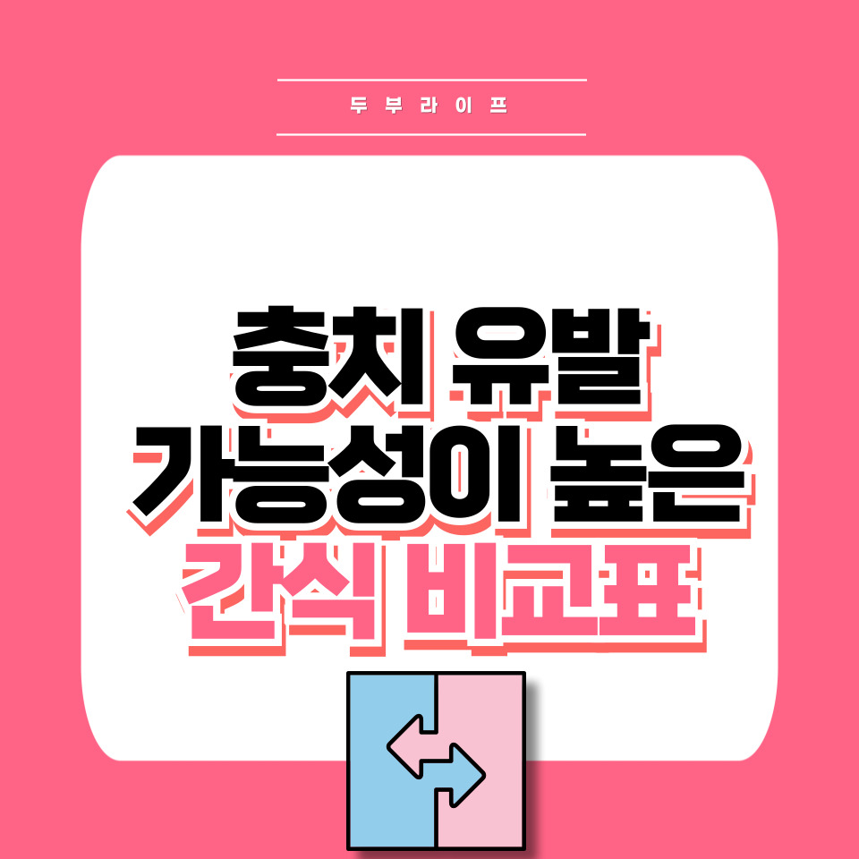 | 간식 종류 | 설탕 함량 | 끈적임/치아 부착력 | 충치 유발 가능성 |