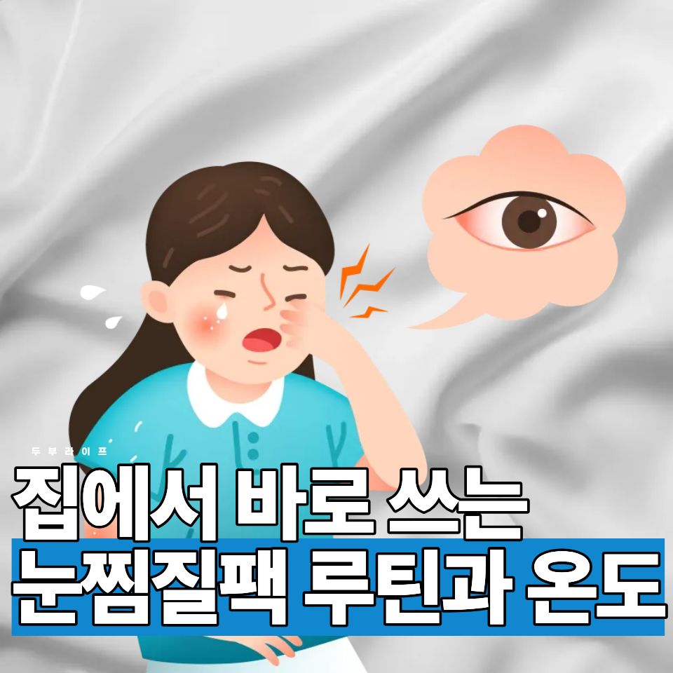 눈찜질팩이 없다면 따뜻한 물에 적신 수건을 꽉 짜서 같은 위치에 올려도 됩니다. 수건이 식으면 다시 데워 이어가세요. 사용 중 눈 피부가 예민하다 느껴지면 얇은 거즈나 손수건을 한 겹 대고 올리면 자극을 줄일 수 있습니다.