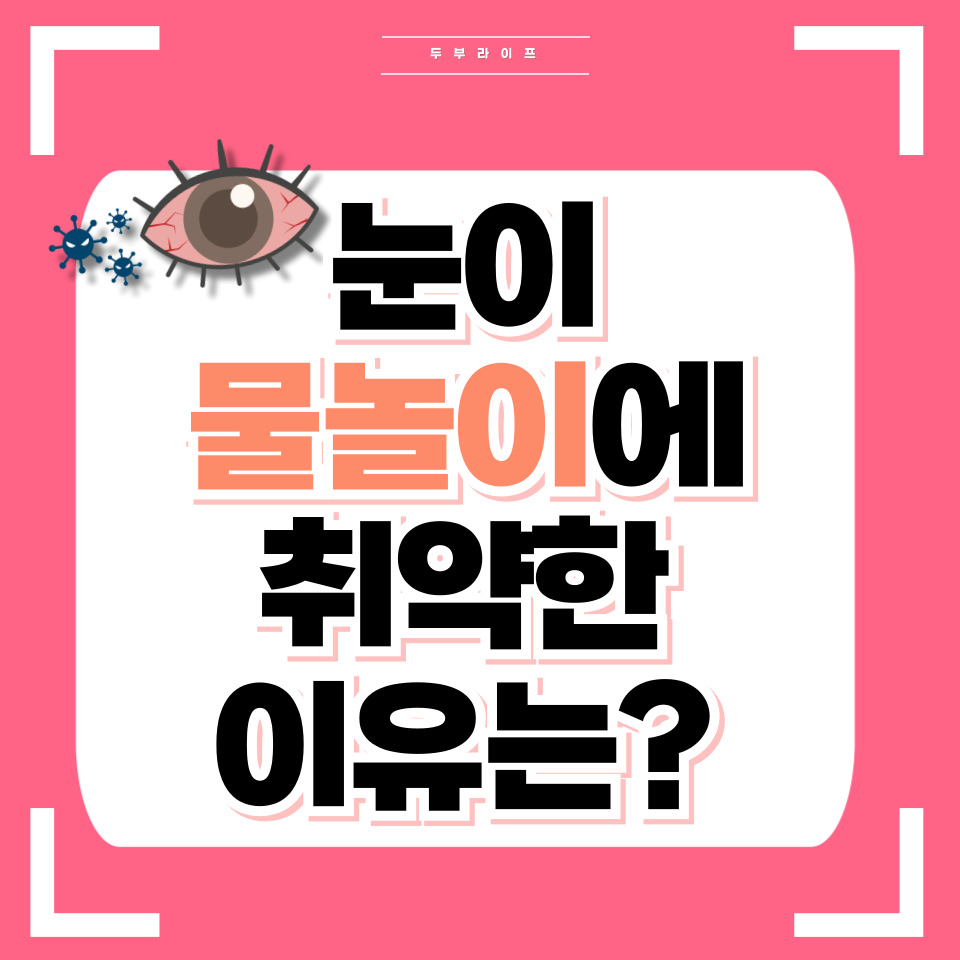 - 여름철 물놀이 위험 요인: 수영장 염소, 바닷물 염분 등의 눈 자극과 면역력 저하가 주요 원인이 될 수 있습니다.