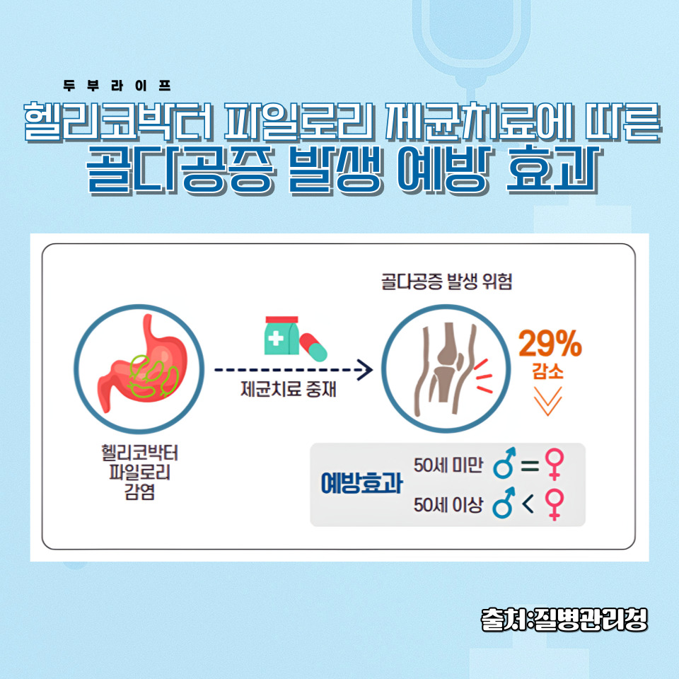 - 제균 치료 효과: 헬리코박터균을 없애면 골다공증 발생 위험이 약 29% 감소하는 것으로 나타났습니다.